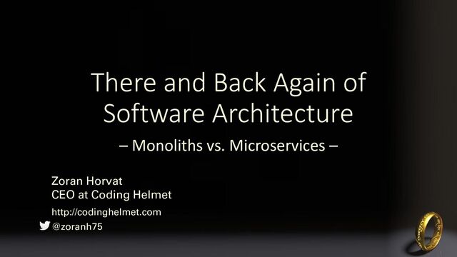 Any mention of monolithic applications would raise an eyebrow or two today - and with a good reason. Our accumulated experience is teaching us that monolithic applications bring many issues, not least important them being hard to maintain. On the other end of the specter we find microservices, the preferred design in the eyes of many. And there are myriads of designs and architectures in between these two extremes. Who's right there? In this presentation, we will analyze common design problems, starting from monolithic designs, paying extra attention to pathological coupling, violating transactional consistency and unclear data ownership. By the end of this presentation, you will learn that, from the perspective of design, there is no substantial difference between multitier design which resembles a monolith and microservices - assuming each of them is done right. And more, you will learn that a proper, maintainable monolith can easily be morphed into microservices, and vice versa.