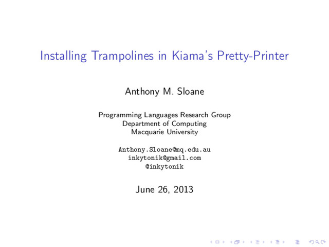 Width) : Layout = { val initBuffer = new ListBuffer[String] () val cend = (p, dq) => (r) => initBuffer val finalBuffer = d (0, w) (cend) (0, emptyDq) (w) finalBuffer.mkString } type Remaining = Int type Horizontal = Boolean type Buffer = ListBuffer[String] type Out = Remaining => Buffer type OutGroup = Horizontal => Out => Out type PPosition = Int type Dq = Queue[(PPosition,OutGroup)] type TreeCont = (PPosition,Dq) => Out type IW = (Indent,Width) type DocCont = IW => TreeCont => TreeCont