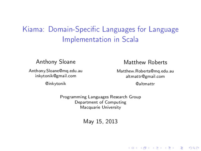 projects: Using macros to get names: bitbucket.org/inkytonik/dsinfo Domain-specific profiling: bitbucket.org/inkytonik/dsprofile sbt plugin for Rats! parser generator: sbt-rats.googlecode.com Scala worksheet for Sublime Text 3: bitbucket.org/inkytonik/scalaworksheet Related work: Stratego: strategoxt.org JastAdd: jastadd.org Swierstra, S., and Chitil, O. Linear, bounded, functional pretty printing. Journal of Functional Programming 19, 1 (2008), 1–16