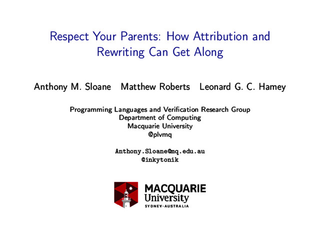 Anthony M. Sloane Matthew Roberts Leonard G. C. Hamey Programming Languages and Verification Research Group Department of Computing Macquarie University @plvmq [email protected] @inkytonik
