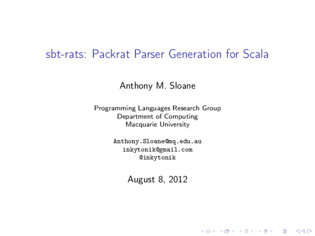 repository. Add .rats specification to project. Plugin uses Rats! to generate a parser implemented in Java. Optional Scala-specific customisation: use Scala lists instead of Rats! pairs use Scala positions instead of Rats! locations use Scala options instead of null
