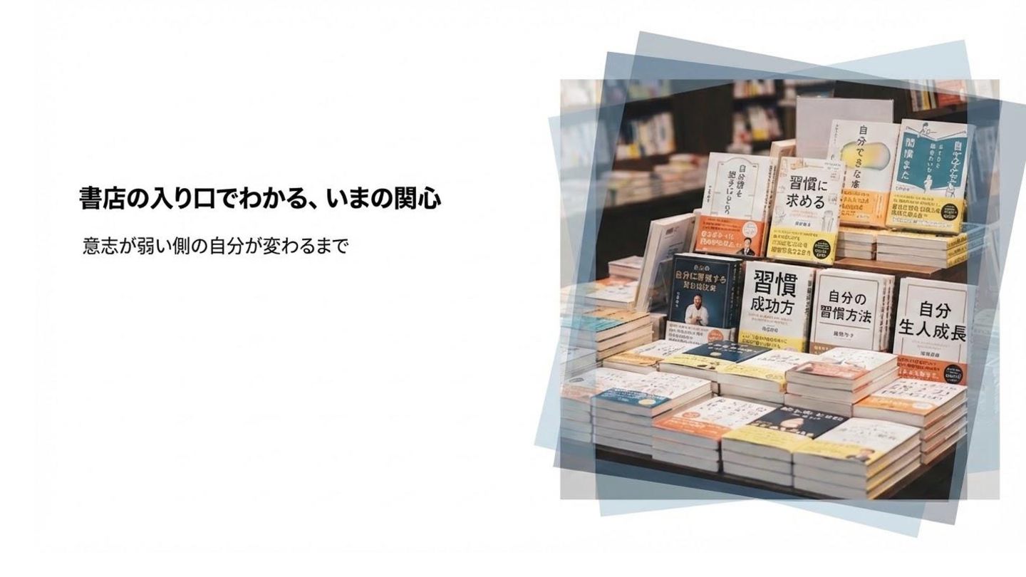 「やりたいことがあるのにできない」を変えた話。書店の入り口に習慣化本が溢れていることに気づき、自分も実践してみました。「1分でいい」「行くだけでいい」と自分へのハードルを爆下げ+スマホを別の部屋に隠す、たったこれだけでピアノ・ジム・読書が習慣化できた実体験のLTです。
