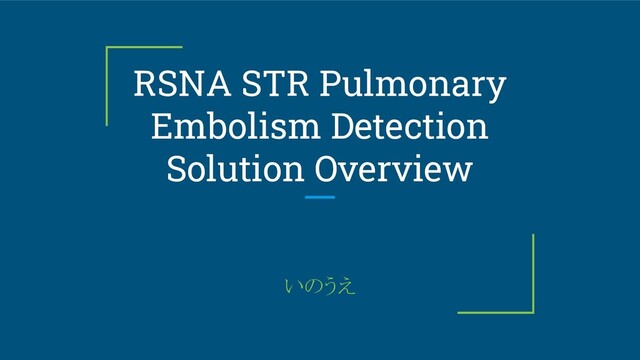 2020 RSNA STR Pulmonary Embolism Detection SolutionのOverview Competition link: https://www.kaggle.com/c/rsna-str-pulmonary-embolism-detection