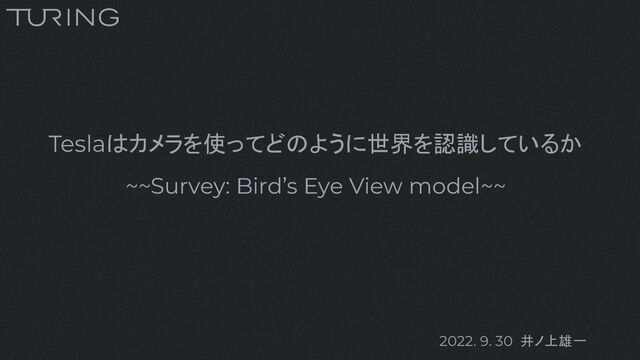 AI Day【翻訳レポート】過去 10年で最も素晴らしい AIプレゼンテーションのひとつ: link • Monocular BEV Perception with Transformers in Autonomous Driving:link • Monocular Bird’s-Eye-View Semantic Segmentation for Autonomous Driving:link • Carion, Nicolas, Francisco Massa, Gabriel Synnaeve, Nicolas Usunier, Alexander Kirillov, and Sergey Zagoruyko. 2020. “End-to-End Object Detection with Transformers.” arXiv [cs.CV]. arXiv. http://arxiv.org/abs/2005.12872. • Schulter, Samuel, Menghua Zhai, Nathan Jacobs, and Manmohan Chandraker. 2018. “Learning to Look around Objects for Top-View Representations of Outdoor Scenes.” arXiv [cs.CV]. arXiv. http://arxiv.org/abs/1803.10870. • Lu, Chenyang, Marinus Jacobus Gerardus van de Molengraft, and Gijs Dubbelman. 2018. “Monocular Semantic Occupancy Grid Mapping with Convolutional Variational Encoder-Decoder Networks.” arXiv [cs.RO]. arXiv. http://arxiv.org/abs/1804.02176. • Pan, Bowen, Jiankai Sun, Ho Yin Tiga Leung, Alex Andonian, and Bolei Zhou. 2019. “Cross-View Semantic Segmentation for Sensing Surroundings.” arXiv [cs.CV]. arXiv. http://arxiv.org/abs/1906.03560. • Philion, Jonah, and Sanja Fidler. 2020. “Lift, Splat, Shoot: Encoding Images From Arbitrary Camera Rigs by Implicitly Unprojecting to 3D.” arXiv [cs.CV]. arXiv. http://arxiv.org/abs/2008.05711. • Yang, Weixiang, Qi Li, Wenxi Liu, Yuanlong Yu, Yuexin Ma, Shengfeng He, and Jia Pan. n.d. “Projecting Your View Attentively: Monocular Road Scene Layout Estimation via Cross-View Transformation.” CVPR2021. Link Section 00 - 00