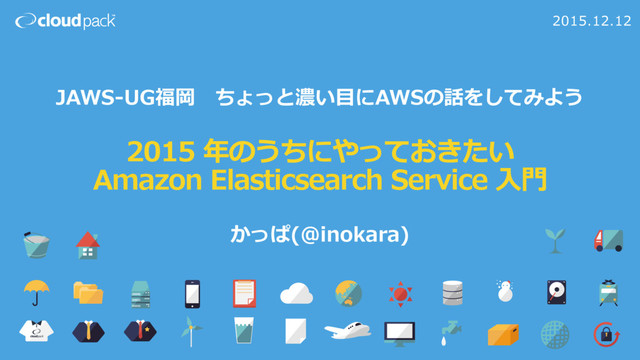 2015 年のうちにやっておきたい Amazon Elasticsearch Service ⼊⾨ 2015.12.12 JAWS-UG福岡 ちょっと濃い⽬にAWSの話をしてみよう かっぱ(@inokara)
