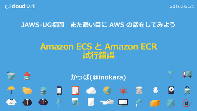 Amazon ECS と Amazon ECR 試⾏錯誤 2016.03.21 JAWS-UG福岡 また濃い⽬に AWS の話をしてみよう