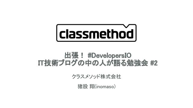 出張! #DevelopersIO IT技術ブログの中の人が語る勉強会 #2 クラスメソッド株式会社 猪股 翔(inomaso) 1