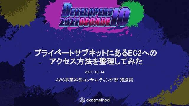 プライベートサブネットにあるEC2への アクセス方法を整理してみた 2021/10/14 AWS事業本部コンサルティング部 猪股翔