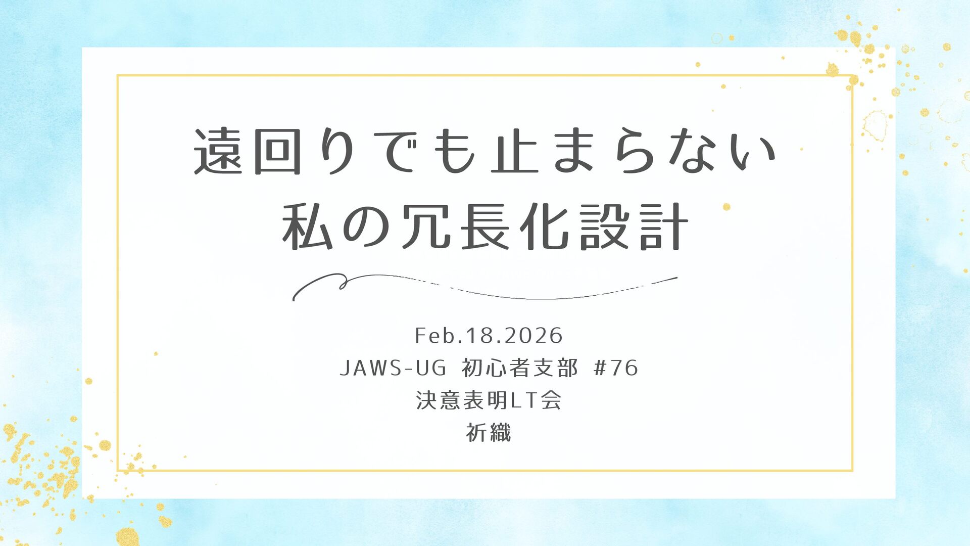 遠回りでも止まらない 私の冗長化設計 Feb.18.2026 JAWS-UG 初心者支部 #76 決意表明LT会 祈織