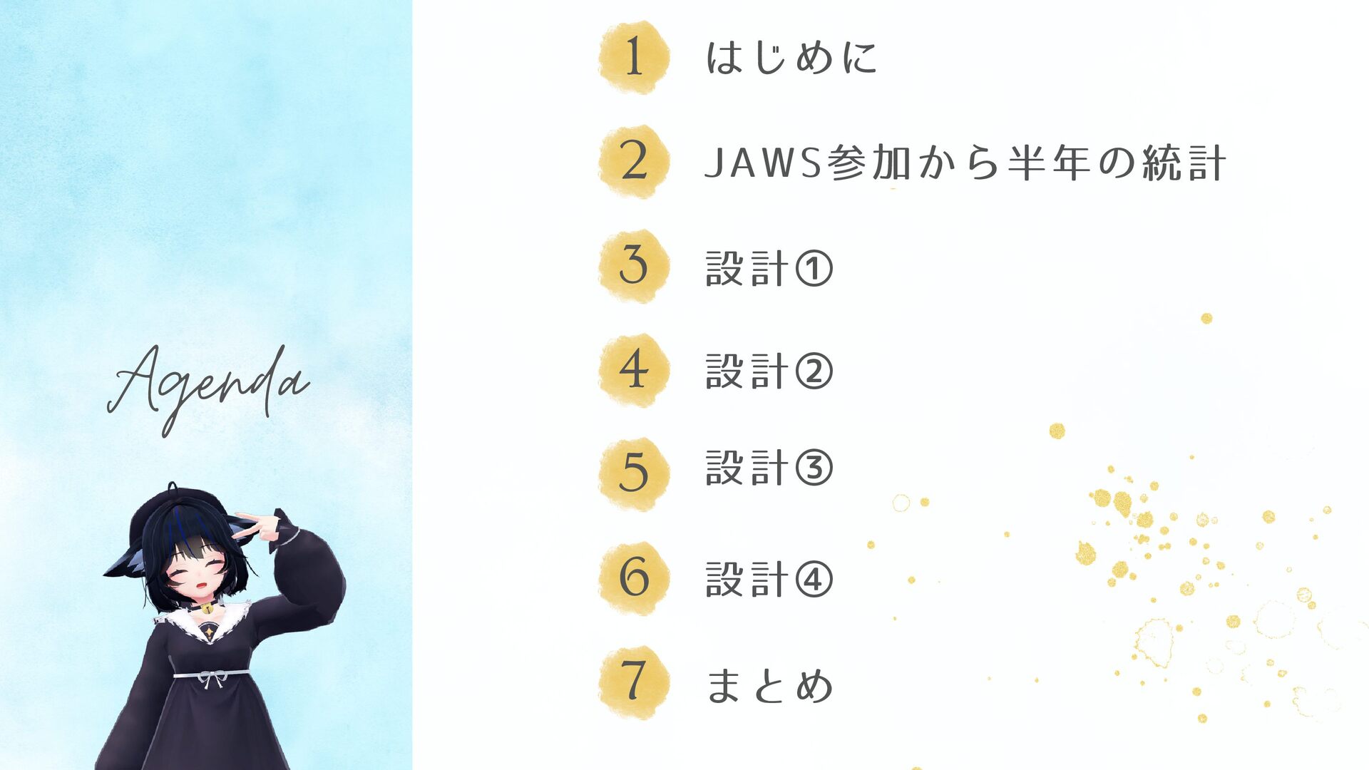 1 2 3 4 6 Agenda はじめに JAWS参加から半年の統計 設計① 設計②