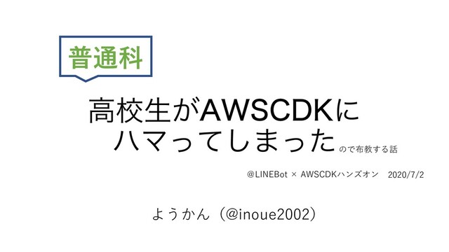 ߴߍੜ͕"84$%,ʹ ϋϚͬͯ͠·ͬͨ 普通科 @LINEBot × AWSCDKハンズオン 2020/7/2 ようかん(@inoue2002) ので布教する話