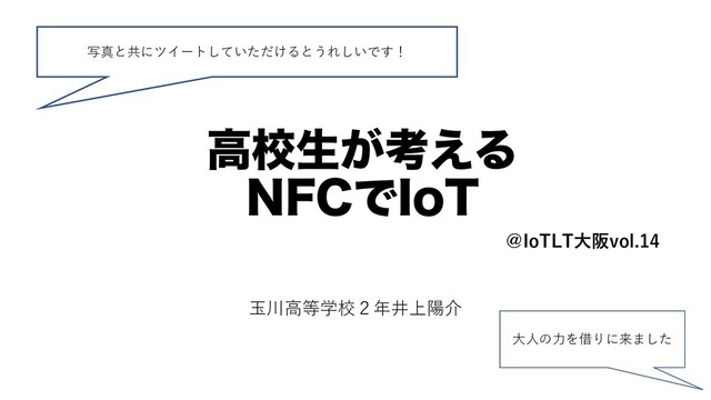 ߴߍੜ͕ߟ͑Δ /'$Ͱ*P5 ⽟川⾼等学校2年井上陽介 @IoTLT⼤阪vol.14 写真と共にツイートしていただけるとうれしいです! ⼤⼈の⼒を借りに来ました