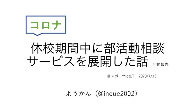 ٳߍظؒதʹ෦׆ಈ૬ஊ αʔϏεΛల։ͨ͠ ׆ಈใࠂ コロナ @スポーツIotLT 2020/7/13 ようかん(@inoue2002)