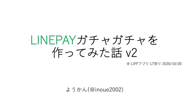 LINEPAYガチャガチャを 作ってみた話 v2 @ LIFFアプリ LT祭り 2020/10/20 ようかん(@inoue2002)