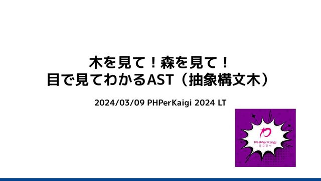 26 トーク概要 このトークでは、ASTを見ます。 見ることで理解に迫ります。年に1度、5分だけ、1年分の感謝を込めてASTだけを見つめPHP Parserに 想いを馳せる。そんな時間にしたいと思います。 https://fortee.jp/phperkaigi-2024/proposal/55a9f921-3540-4373-bed8-8b3073c06d64