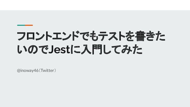フロントエンドでもテストを書きた いのでJestに入門してみた @inoway46(Twitter)