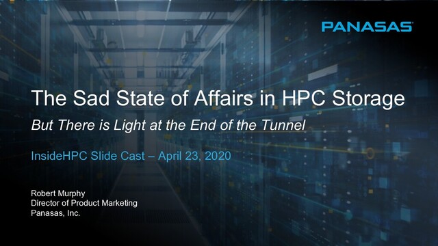 In this deck, Robert Murphy from Panasas describes the current state of the HPC storage market and how Panasas is stepping up with high performance products that deliver economical performance without risk.