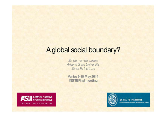 out what it thinks is not relevant) • Society decides the environmental issues and challenges • It is up to society to deal with them • It does so in ways that suit society, not necessarily the environment • Sustainability is fundamentally a societal issue that affects the environment • We have looked for environmental planetary boundaries, but not for social ones. • Can we identify such (a) societal planetary boundary (-ies)? 5/9/14 INSITE final meeting 4