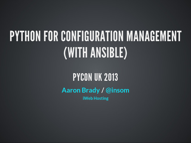 My talk from the PYCON UK 2013 Conference, covering extending Ansible with Python plugins.
