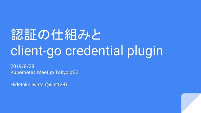 認証の仕組みと client-go credential plugin 2019/8/28 Kubernetes Meetup Tokyo #22 Hidetake