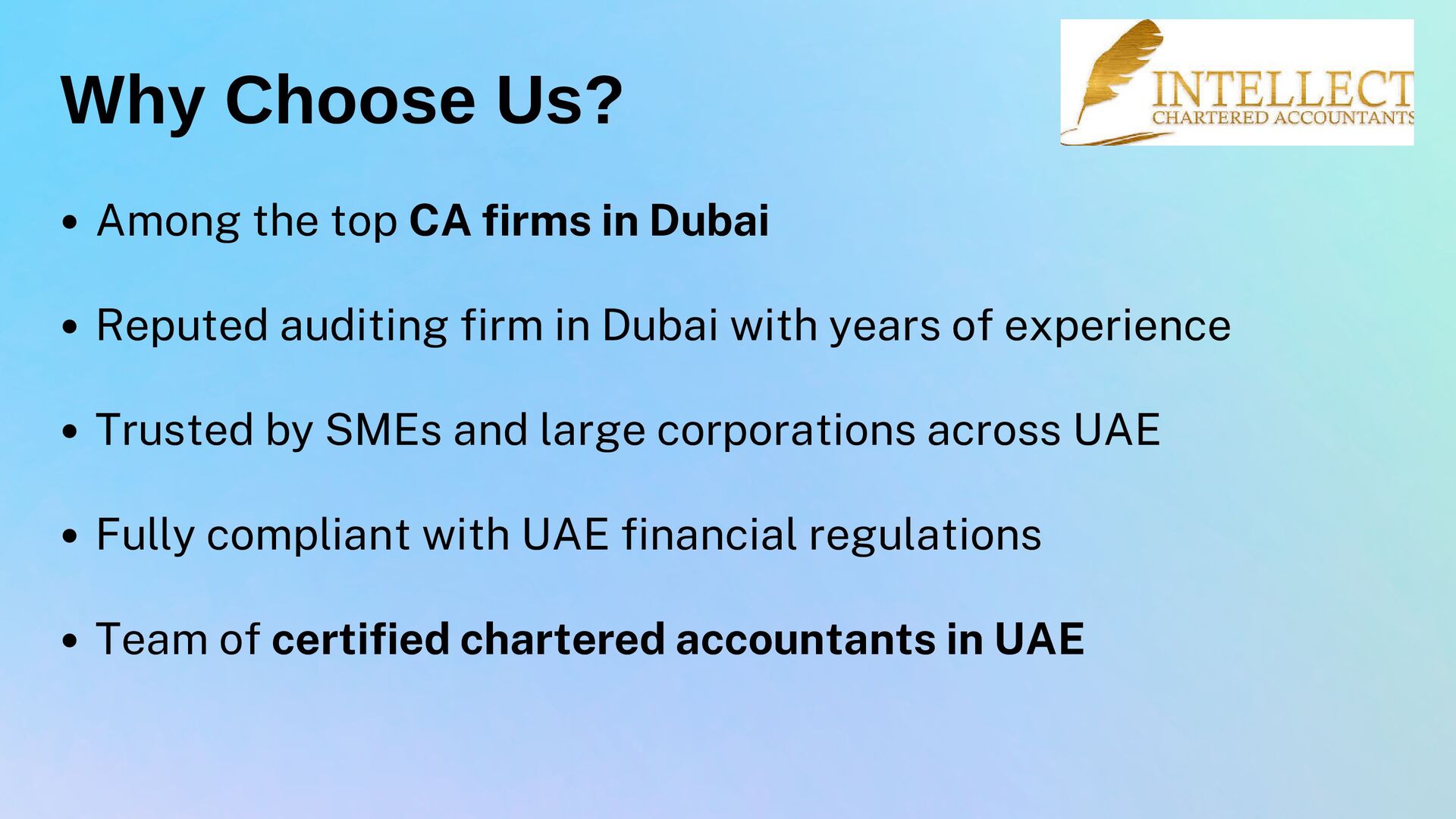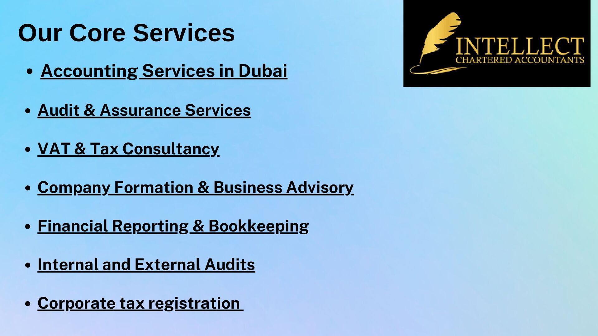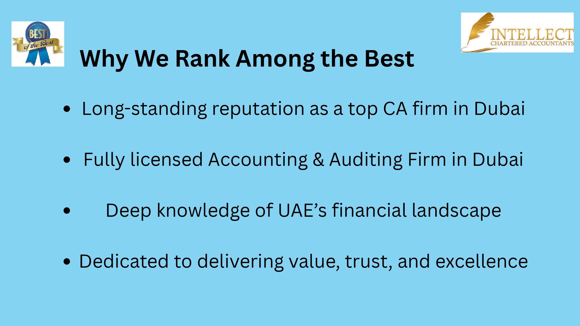 We’re a leading Chartered Accountant firm based in Dubai, offering a full spectrum of professional services across the UAE. Our expert team delivers top-tier accounting and auditing solutions—including VAT, tax advisory, corporate compliance, bookkeeping, and internal/external audit—tailored to clients ranging from SMEs to large enterprises in industries like real estate, retail, hospitality, and manufacturing. Licensed and fully compliant, we pride ourselves on precision, integrity, and proactive client support. Partner with us for trusted financial insights and growth-driven strategies. Visit: https://intellectca.ae/