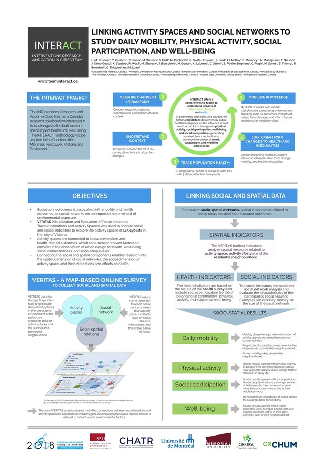 Brunner LM, Kestens Y, Fuller D, Winters M, Laberee K, Sones, M. Linking activity spaces and social networks to study daily mobility, physical activity, social participation, and well-being. Poster Presentation at: European Cycling Summit 2018; September 24-26, 2018; Salzburg, AT.