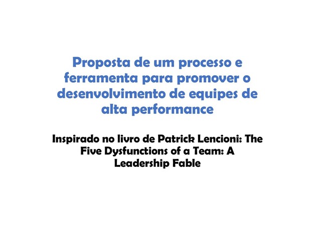cidade natal, desafios da infância, passatempos prediletos, primeiro emprego e pior emprego. • Exercício de eficiência da equipe • Identificar a contribuição considerada a mais importante que cada um de seus colegas faz ao grupo, assim como as ações em que devem melhorar ou que precisem eliminar, pelo bem de todos. • Perfis de preferência de personalidade e de comportamento • Classificação tipológica de Myers-Briggs. • Algumas das melhores características dessa ferramenta são o fato de elas não promoverem julgamentos (nenhuma pessoa é melhor ou pior do que outra, mas todas são substancialmente diferentes). • Questionário: https://www.idrlabs.com/pt/teste. Planos de Ação • Feedback 360º