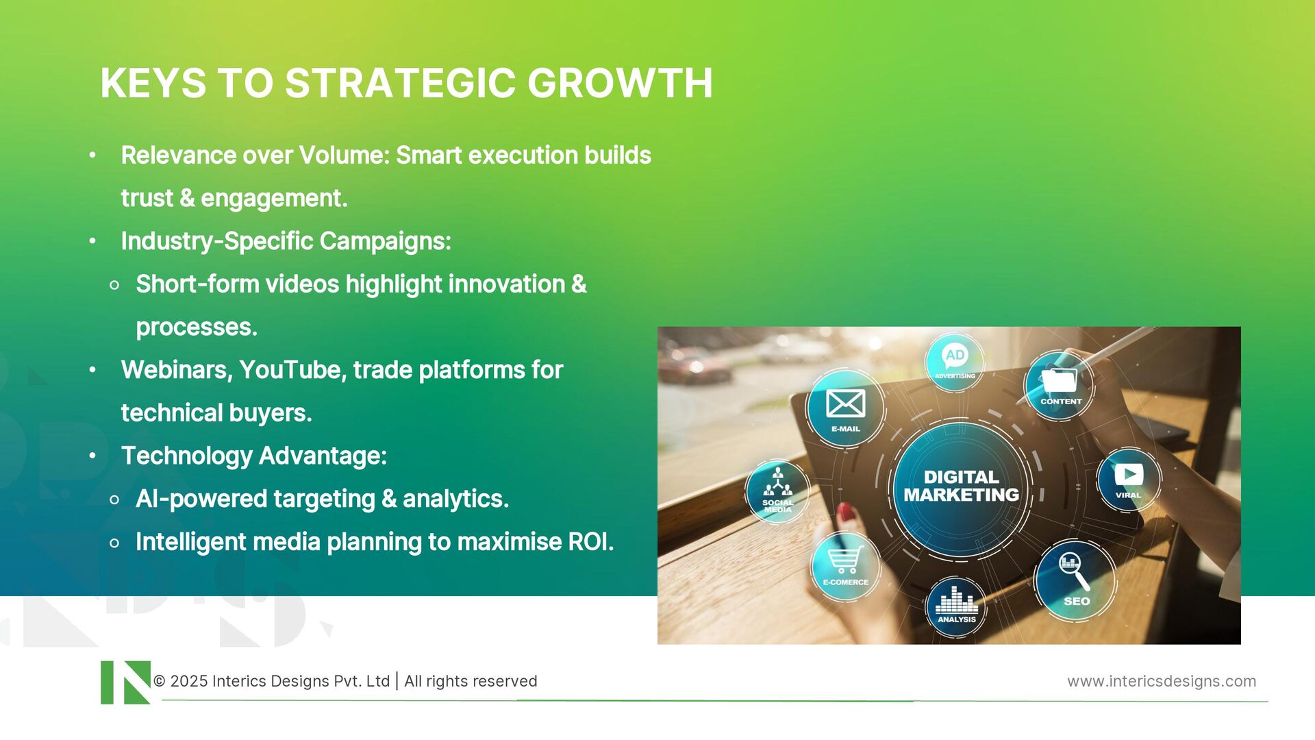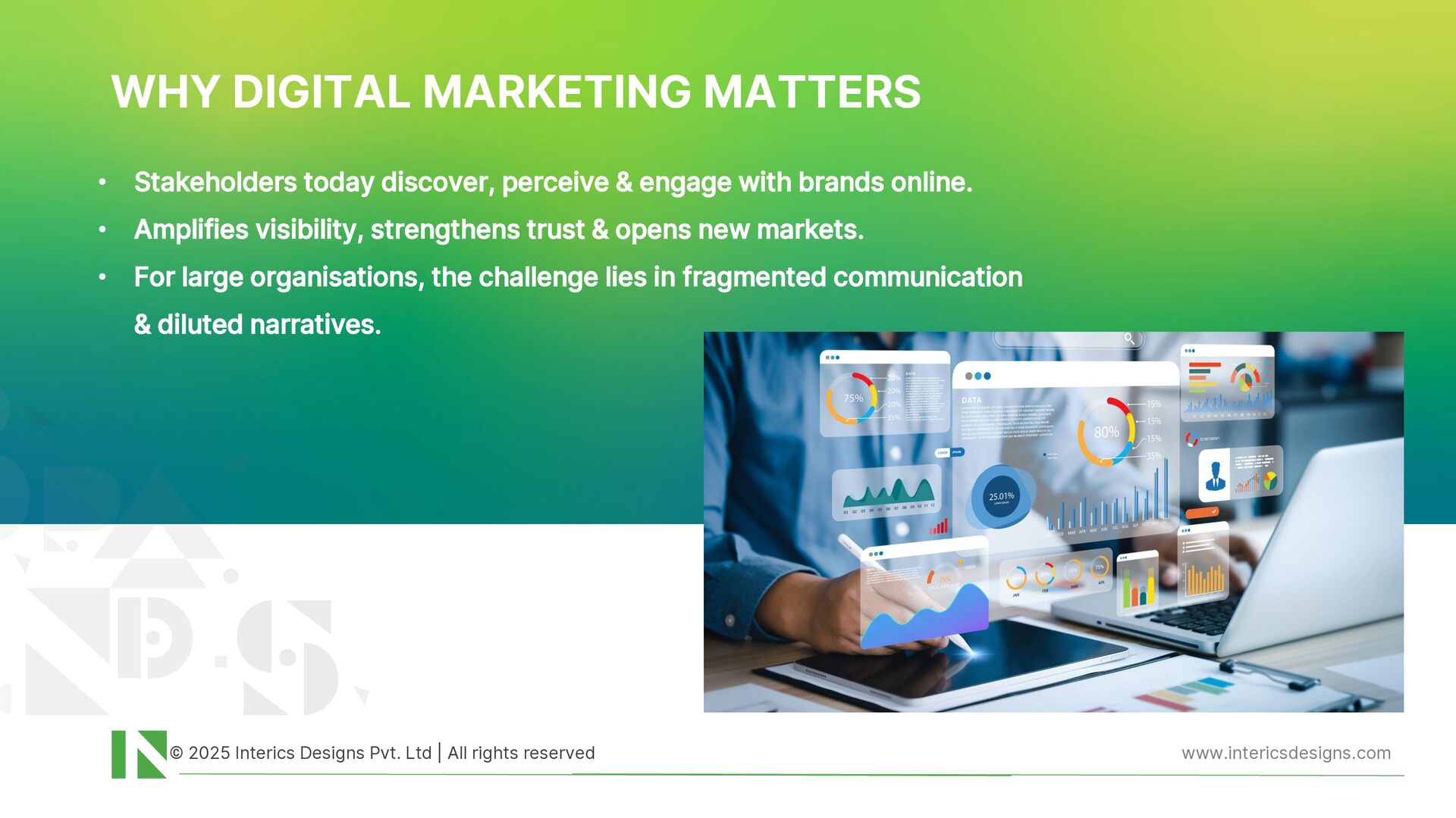 An insightful overview of the distinction between graphic design and branding, highlighting the importance of strategic thinking beyond visual execution. It reflects how Interics Designs integrates research, storytelling, and design to develop cohesive brand identities that drive meaningful engagement and long-term business impact.