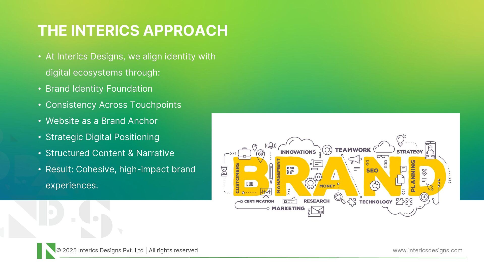 In today’s rapidly evolving digital world, capturing attention goes beyond visibility — it requires immersive, insight-driven brand experiences anchored in a strong identity. By aligning strategy, creativity, and technology, Interics Designs helps businesses build cohesive brand identities and extend them seamlessly across digital ecosystems, ensuring clarity, consistency, and lasting impact in a competitive marketplace.