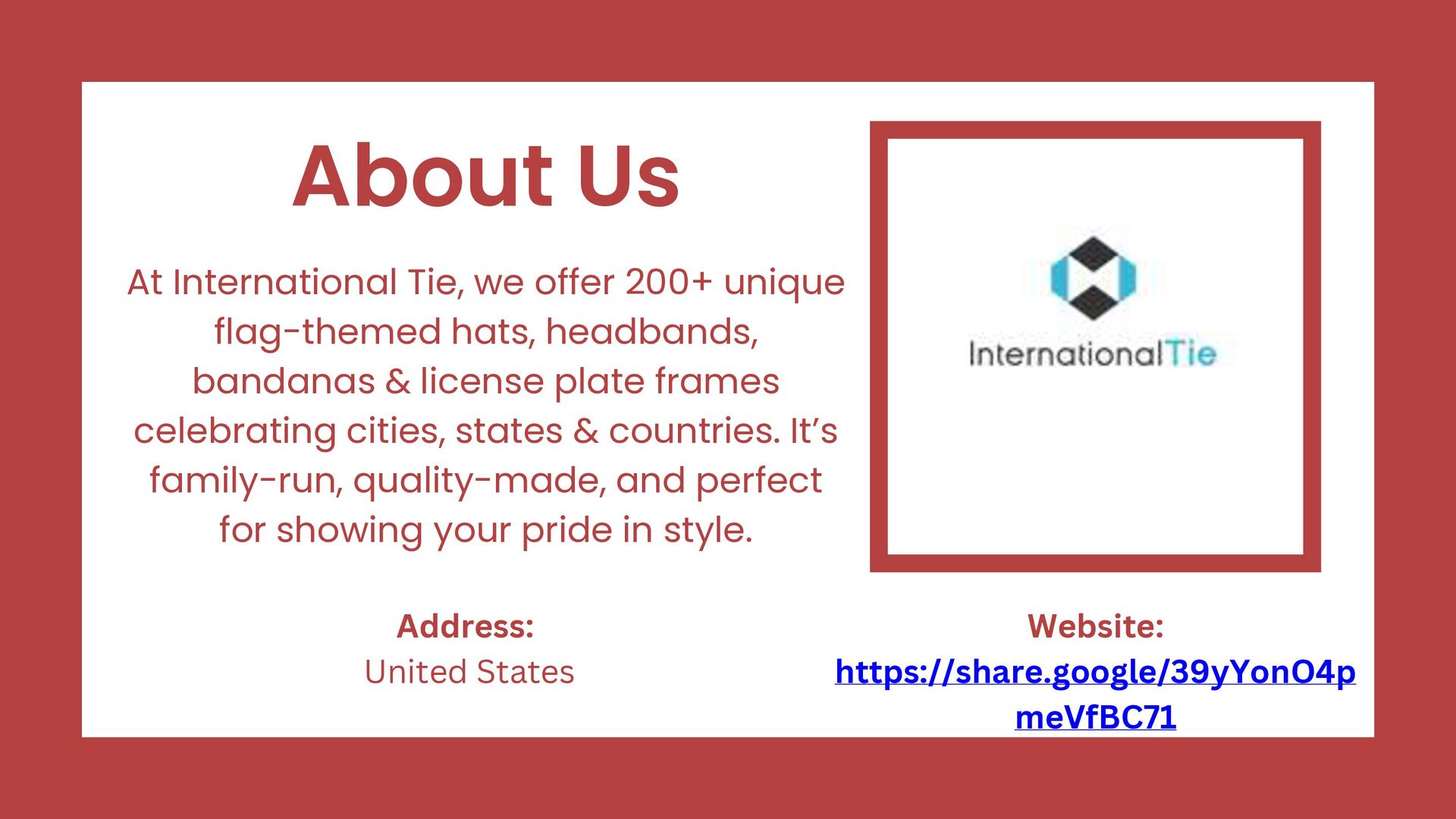 hats, headbands, bandanas & license plate frames celebrating cities, states & countries. It’s family-run, quality-made, and perfect for showing your pride in style. Website: https://share.google/39yYonO4p meVfBC71 Address: United States