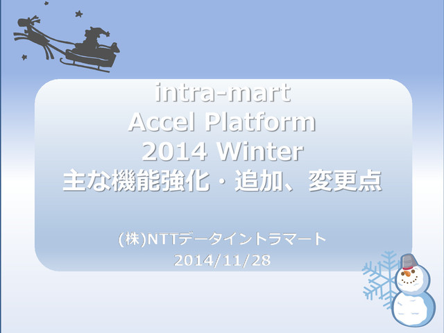 2014/12/1リリースのintra-mart Accel Platform 2014 Winter/Accel Collaboration 2014 Winterなどでの主な機能強化、追加、変更点概要。