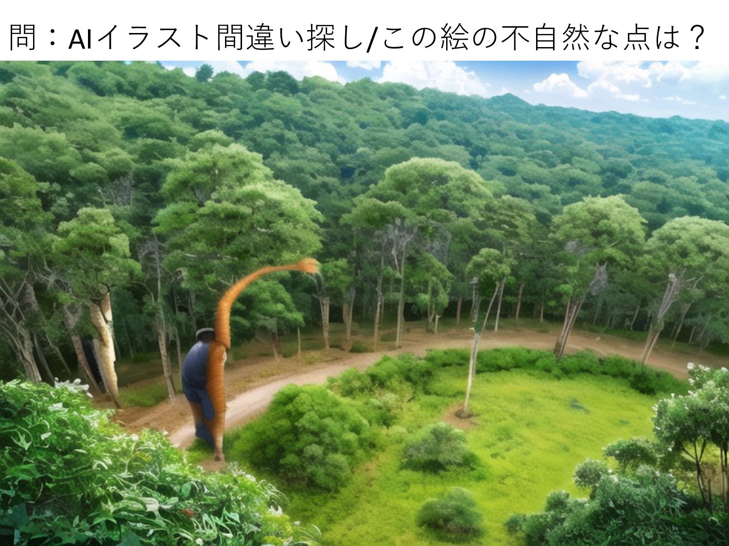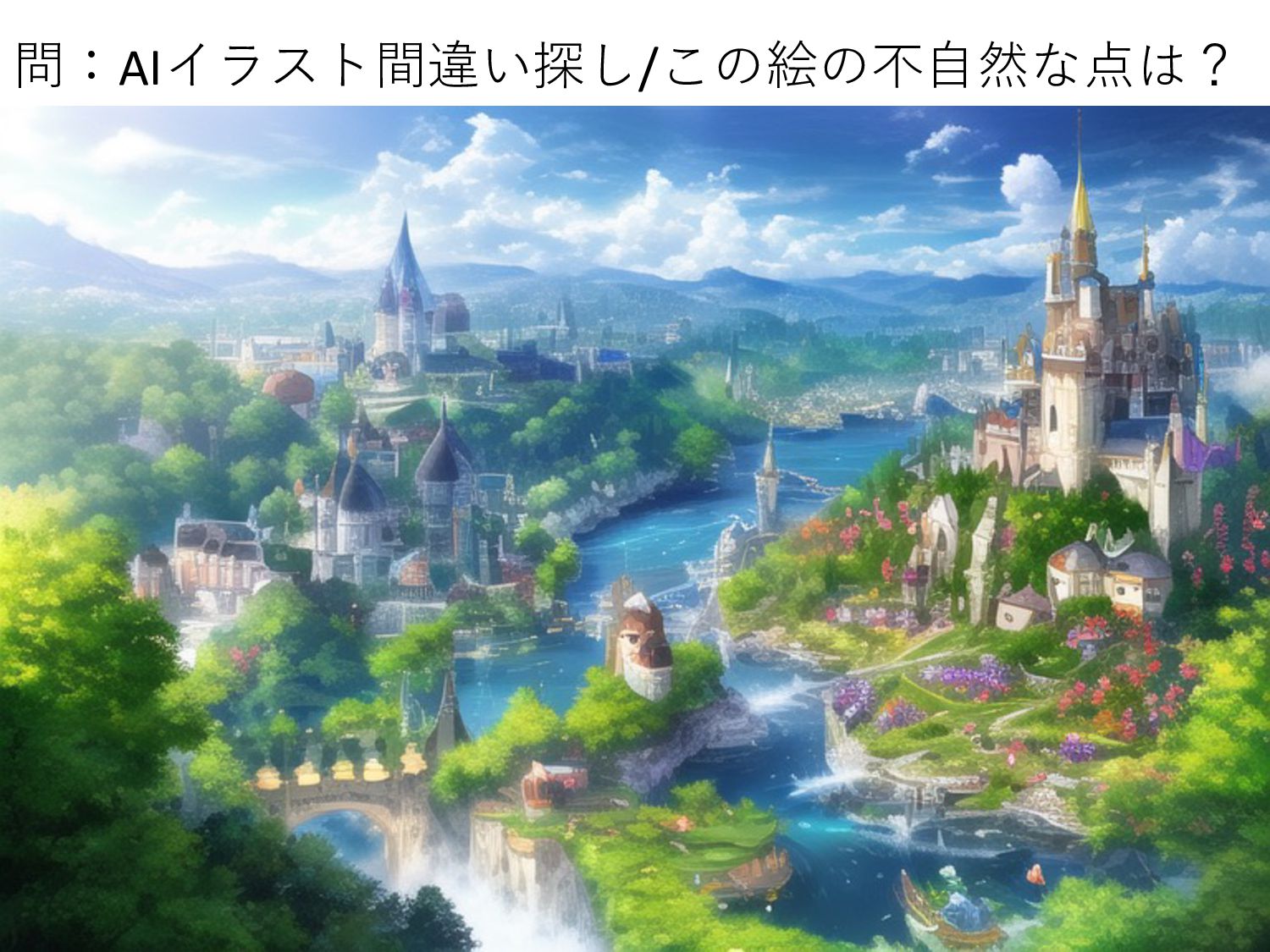 問:AIイラスト間違い探し/この絵の不⾃然な点は?