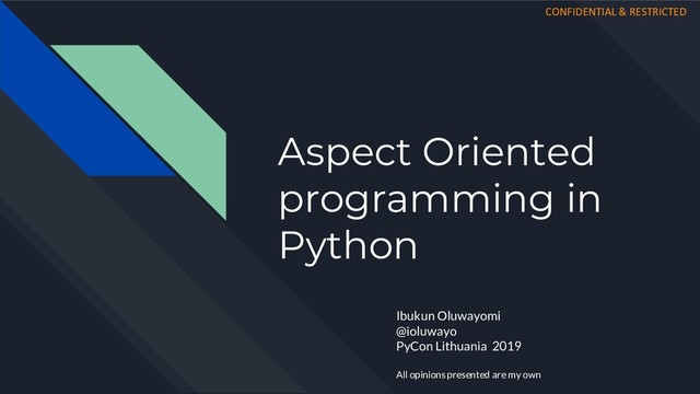 This talk highlights these features and a few open source libraries developed to facilitate implementing aspect oriented programming in Python.