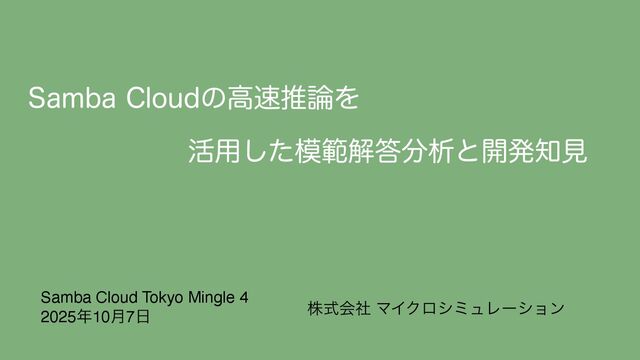 4BNCB$MPVEͷߴਪΛ ׆༻ͨ͠ൣղੳͱ։ൃݟ Samba Cloud Tokyo Mingle 4 202510݄7 גࣜձࣾ ϚΠΫϩγϛϡϨʔγϣϯ