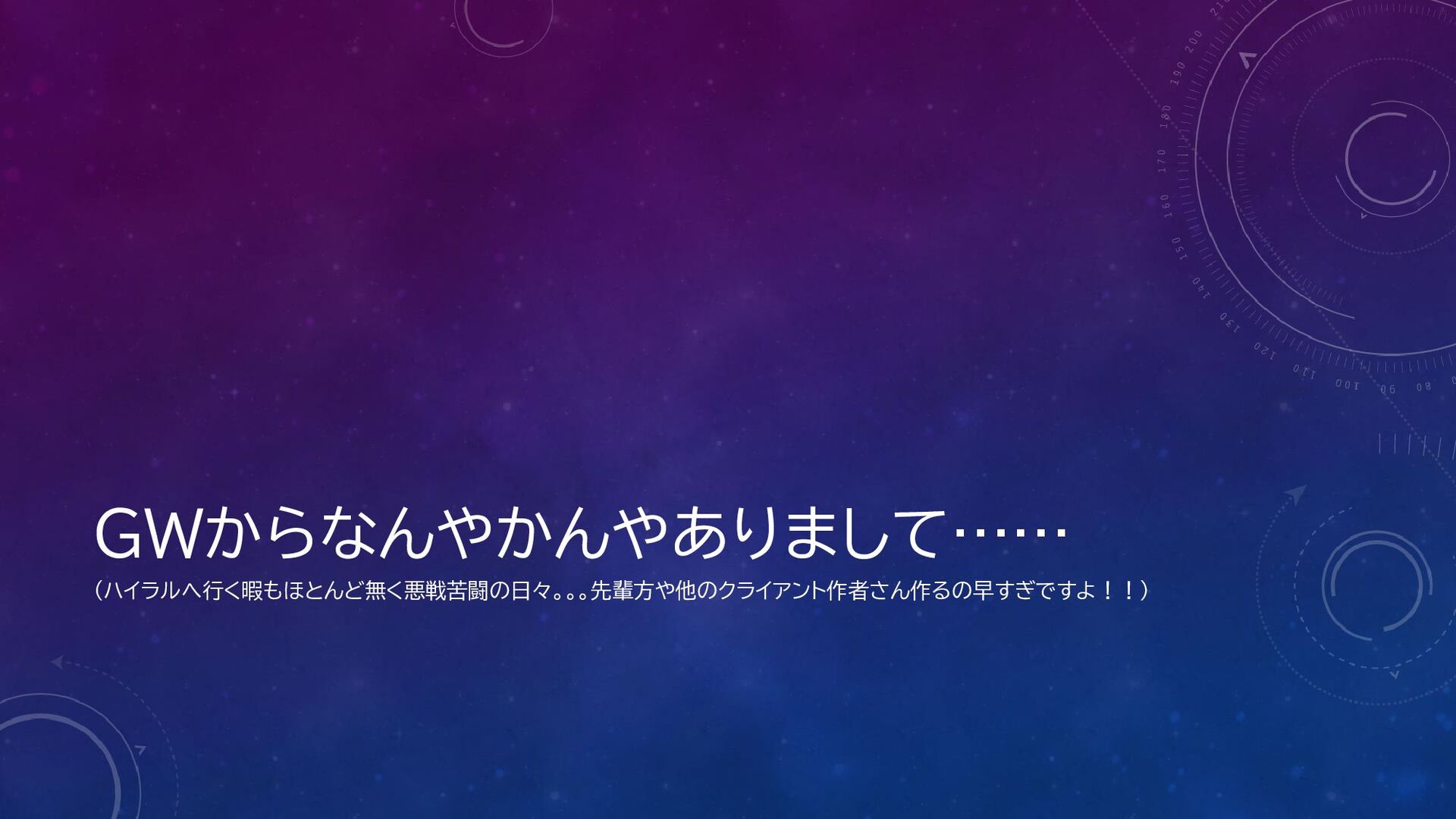 GWからなんやかんやありまして…… (ハイラルへ行く暇もほとんど無く悪戦苦闘の日々。。。先輩方や他のクライアント作者さん作るの早すぎですよ!!)
