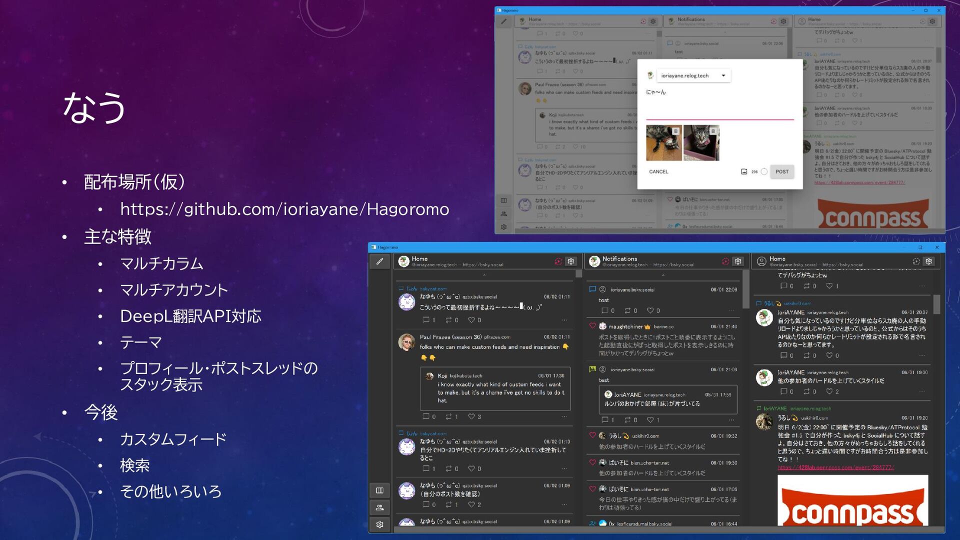 なう • 配布場所(仮) • https://github.com/ioriayane/Hagoromo • 主な特徴 • マルチカラム •