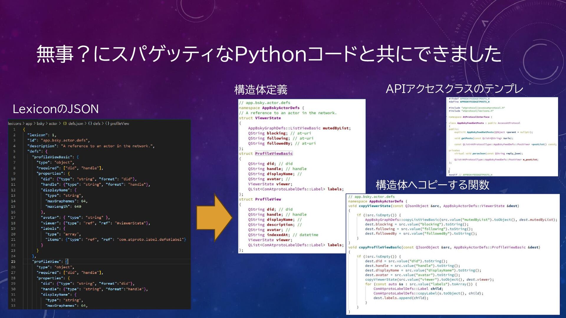 無事?にスパゲッティなPythonコードと共にできました LexiconのJSON 構造体定義 構造体へコピーする関数 APIアクセスクラスのテンプレ