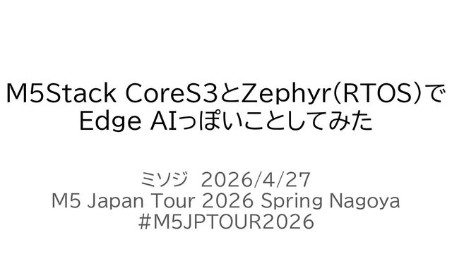 M5Stack CoreS3とZephyr(RTOS)で Edge AIっぽいことしてみた ミソジ 2026/4/27 M5 Japan Tour 2026