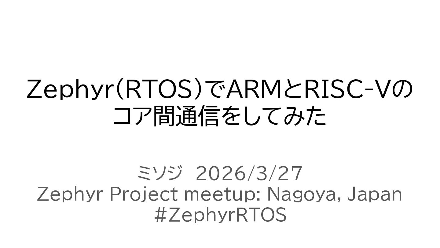 Zephyr(RTOS)でARMとRISC-Vの コア間通信をしてみた ミソジ 2026/3/27 Zephyr Project meetup: Nagoya, Japan #ZephyrRTOS