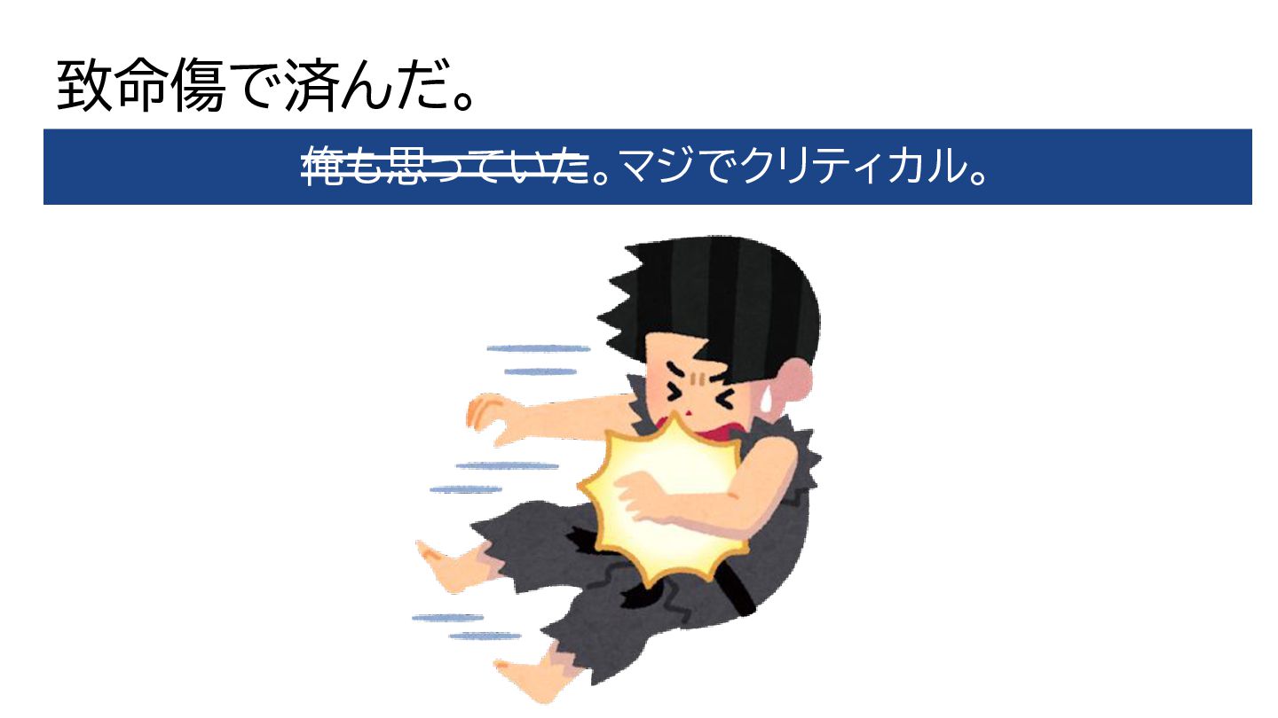 致命傷で済んだ。 俺も思っていた。マジでクリティカル。
