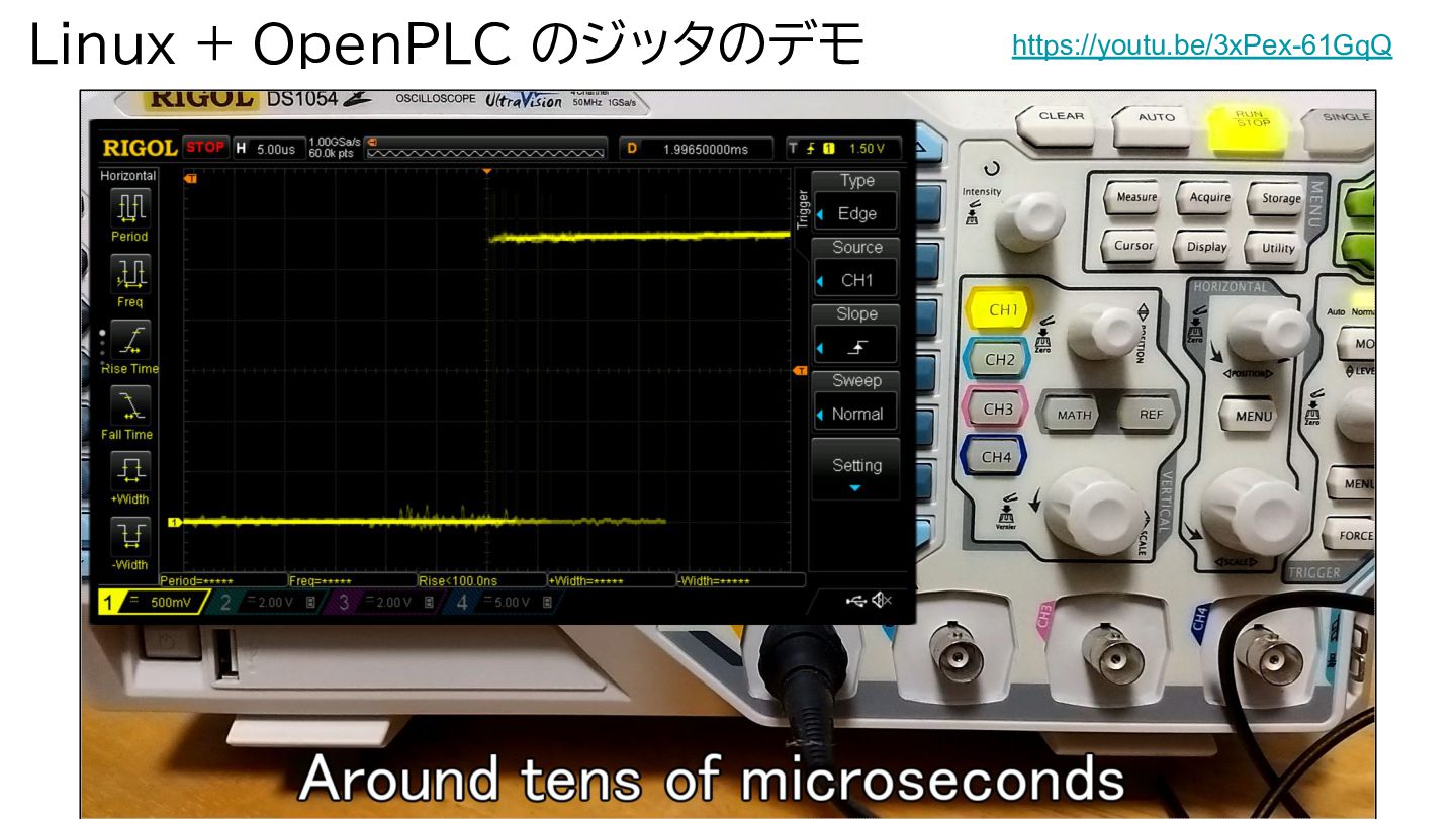 Linux + OpenPLC のジッタのデモ https://youtu.be/3xPex-61GqQ