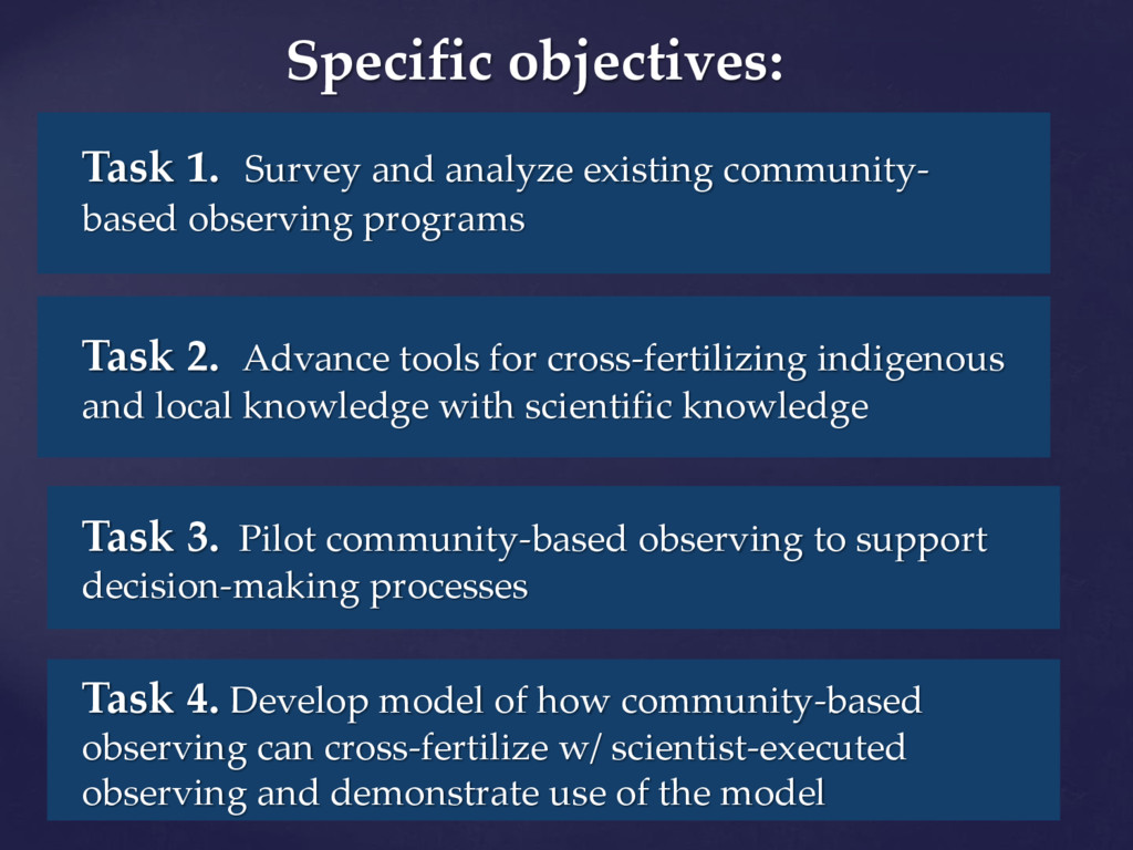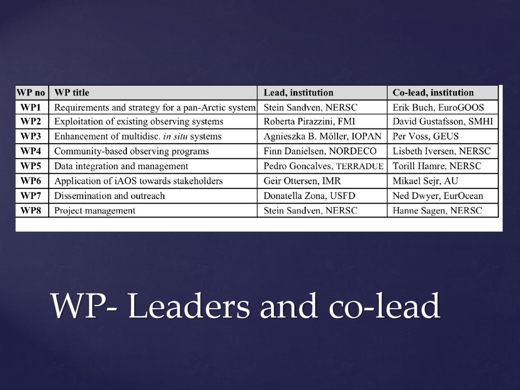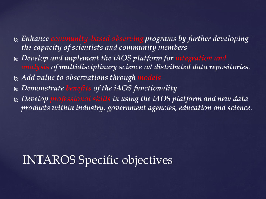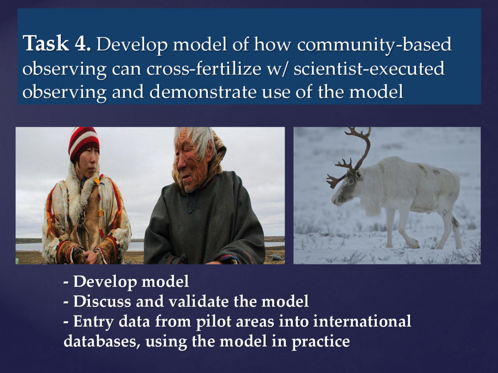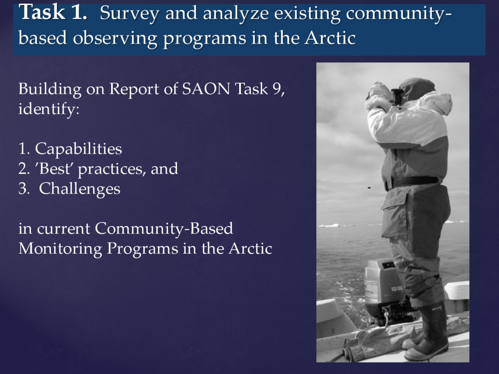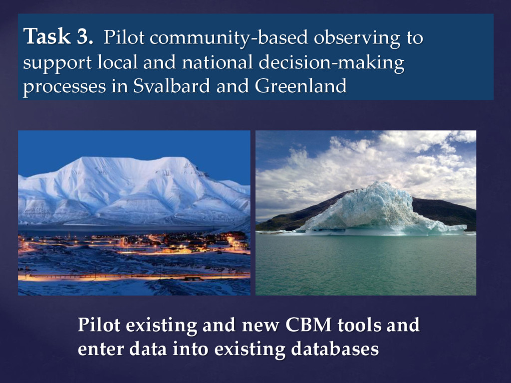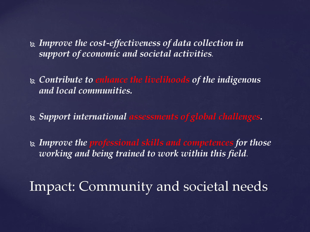 international assessments of global challenges such as climate change, scarcity of natural resources, and global-scale hazards such as earth quakes ((=provide example of the kind of hazard we have in mind)) . to strengthen the societal and economic role of the Arctic region, and to support the EU strategy for the Arctic and related maritime and environmental policies. It is of paramount importance to establish an integrated Arctic Observing System By ‘integrated’, we mean connected across 1) institutions, 2) disciplines, and 3) ways of knowing =my suggestion!