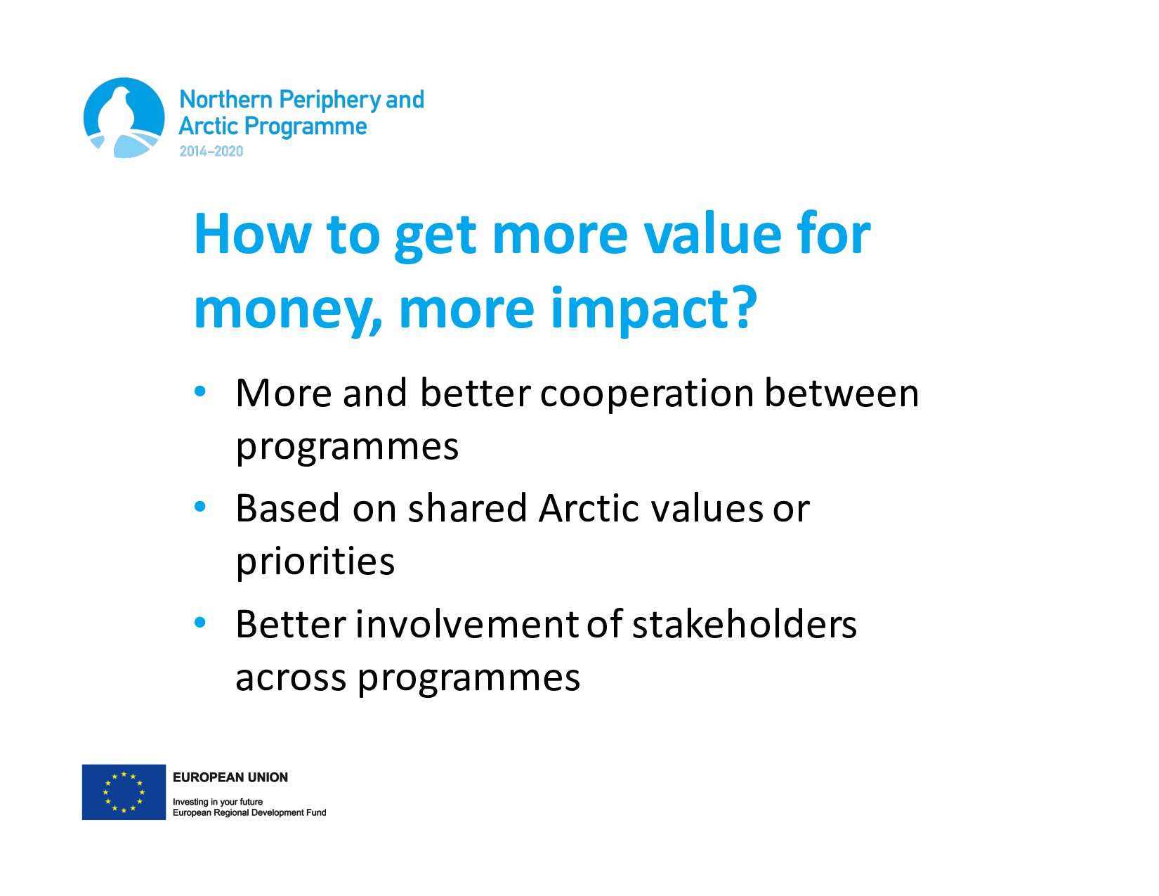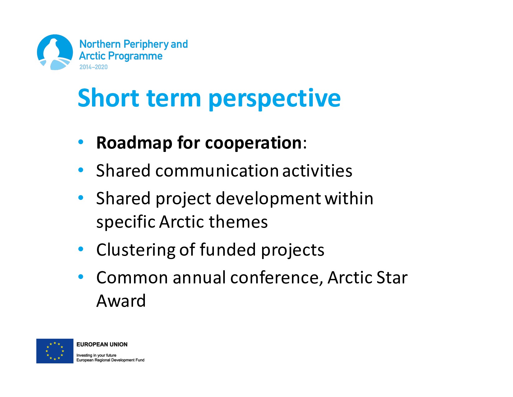communication activities • Shared project development within specific Arctic themes • Clustering of funded projects • Common annual conference, Arctic Star Award