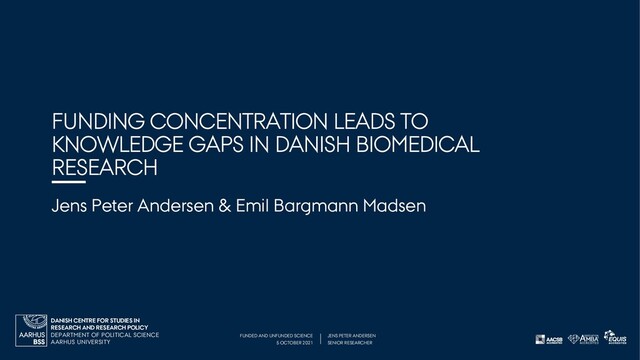 PETER ANDERSEN DEPARTMENT OF POLITICAL SCIENCE AARHUS UNIVERSITY DANISH CENTRE FOR STUDIES IN RESEARCH AND RESEARCH POLICY FUNDING CONCENTRATION LEADS TO KNOWLEDGE GAPS IN DANISH BIOMEDICAL RESEARCH Jens Peter Andersen & Emil Bargmann Madsen