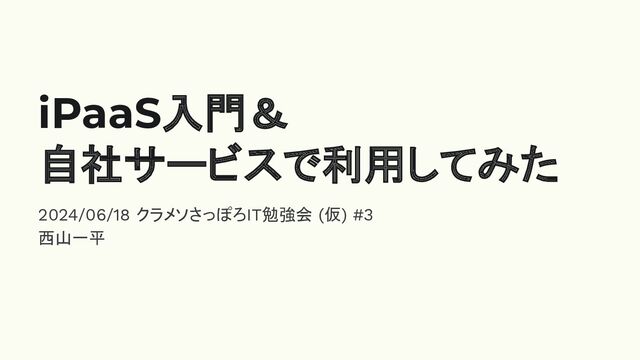 2024/06/18 クラメソさっぽろIT勉強会 (仮) #3 西山一平 iPaaS入門& 自社サービスで利用してみた
