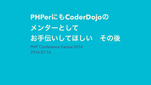 PHPerʹCoderDojoͷ ϝϯλʔͱͯ͠ ͓ख͍ͯ͠΄͍͠ɹͦͷޙ PHP Conference Kansai 2016 2016.07.16