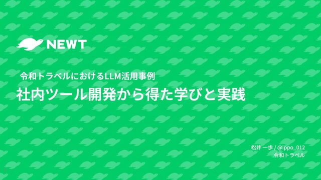 2024年8月27日(火) NEWT Tech Talk vol.11 LLM時代に進化するプロダクト開発 ~最新の事例共有~ https://reiwatravel.connpass.com/event/326112/ #newt_techtalk