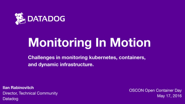 We rely on our monitoring to tell us when our services, applications, or infrastructure diverge from “normal.” Containers have created a new world of dynamic infrastructure where normal is changing constantly, making it quite difficult to define. How do you check if a service is up when your scheduler or clustering tools are changing the hosts and ports it runs on? Ilan Rabinovitch will review techniques for successful monitoring workflows and explains how to instrument your code in your containers and track the performance and availability of your applications as they move around. The techniques discussed will apply regardless of the monitoring platform you choose.