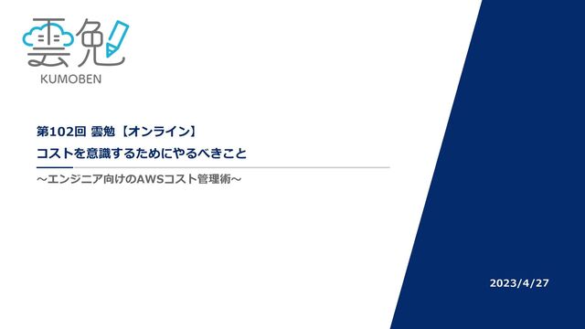 → Action(改善) AWSサービスの選定 ⾒積もりを⽴てる(Pricing Calculator) 予算を決める(Budgets) リソースの作成 Auto Scalingなどサービスの導⼊ Cost Explorer Cost and Usage Reports 分析ツール スペック変更 リザーブドインスタンスの購⼊ 運⽤改善 Plan Do Check Action