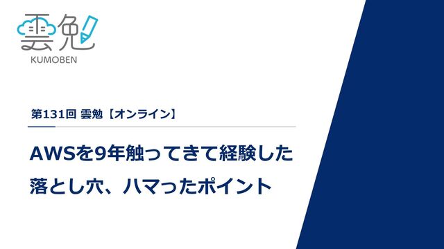 第131回 雲勉【オンライン】 AWSを9年触ってきて経験した 落とし⽳、ハマったポイント